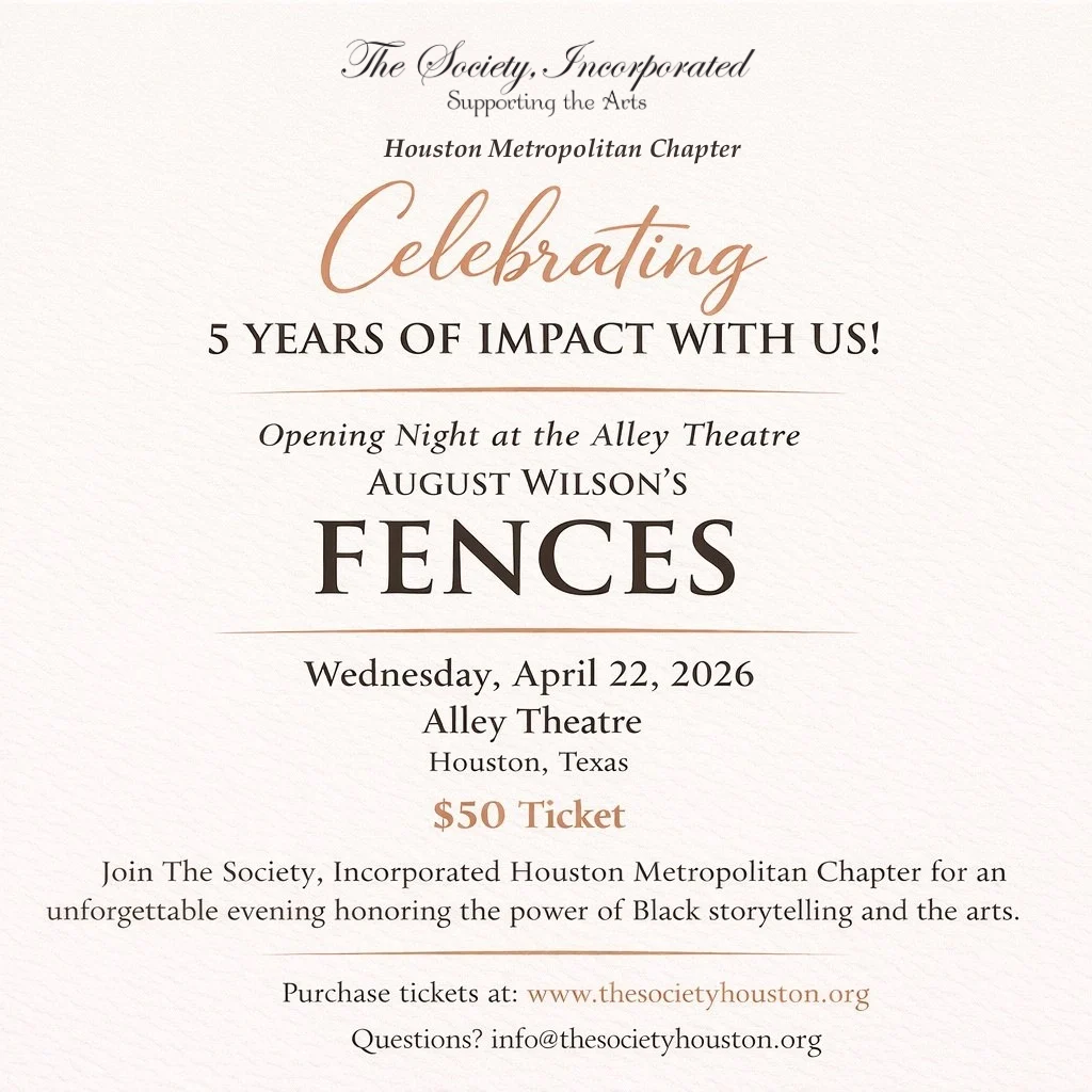 Celebrate five years of impact with The Society, Incorporated Houston Metropolitan Chapter at Fences on Opening Night.